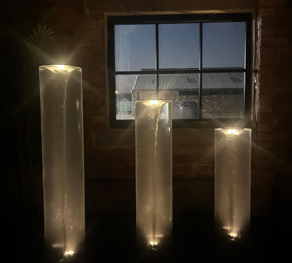 Add some fun to your garden with our fascinating vortex columns. The whirling motion of the water as it spins up the inside of the columns creates a void along its vertical axis. This void literally sucks in the air from above into the column to create your very own tornado, a truly wonderful focal point, especially at night when illuminated.
